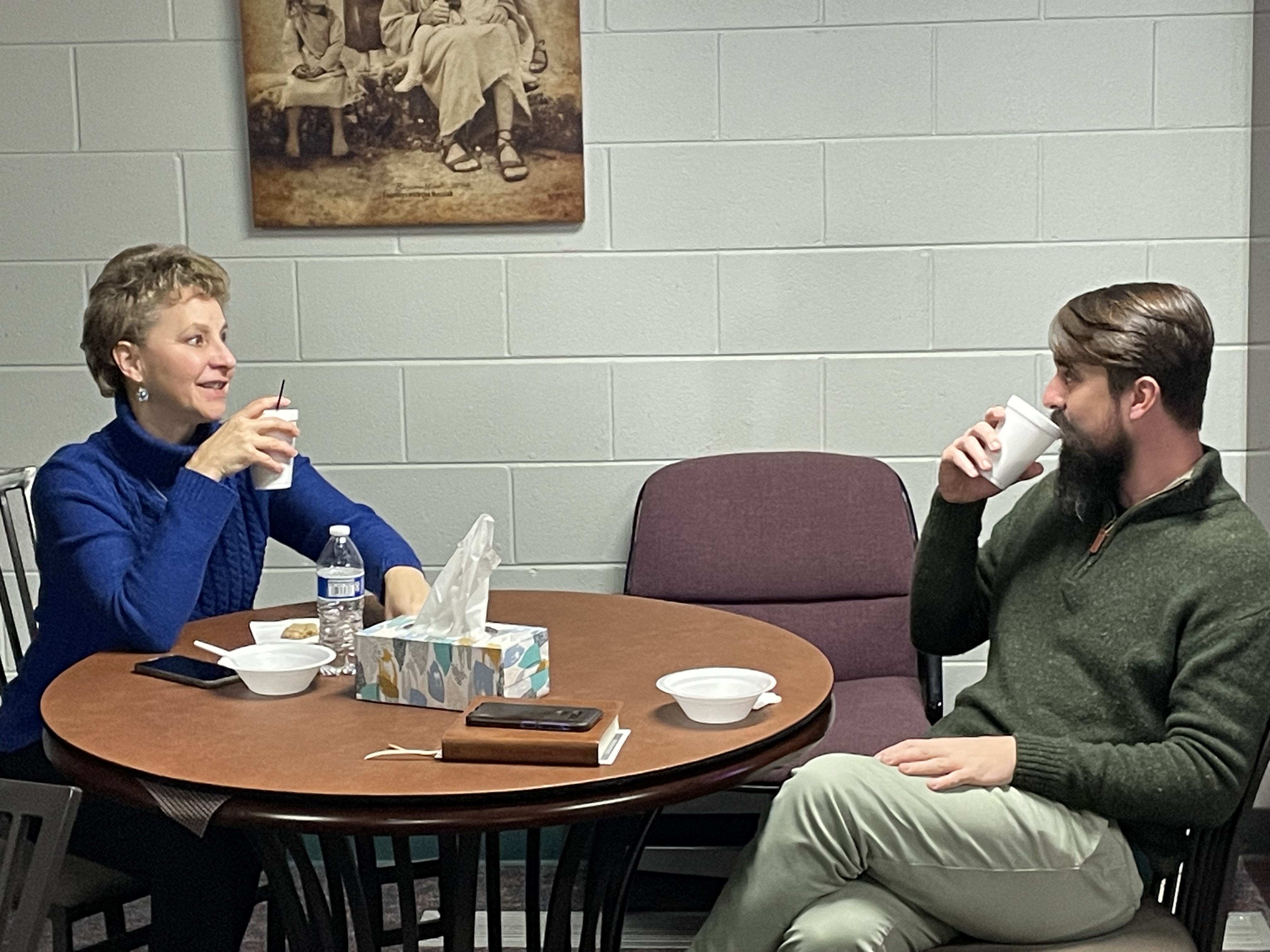 Ladies' meet on the first Saturday of every month at 10 AM. They work through different books throughout the year.